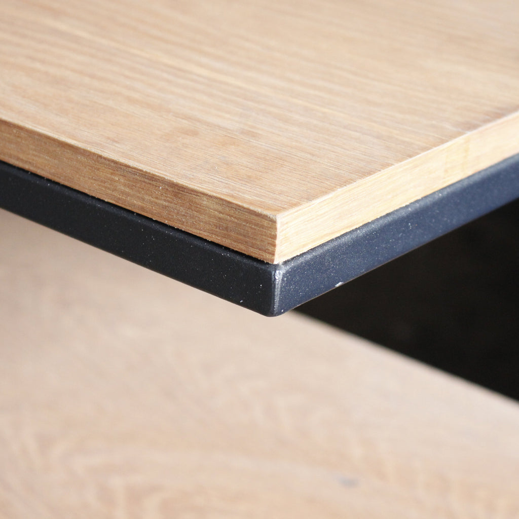 Provide additional storage furniture at your living, bedroom or dining space. This item also makes a practical TV Stand. The standard design comes with a American White Oak Venner top shelf and Black Ash bottom shelf. The shelves are supported with full perimeter metal frame and metal legs with 1.6mm thick gauge.