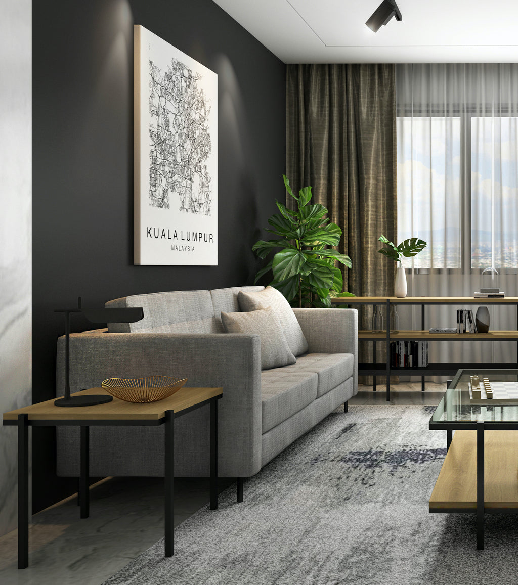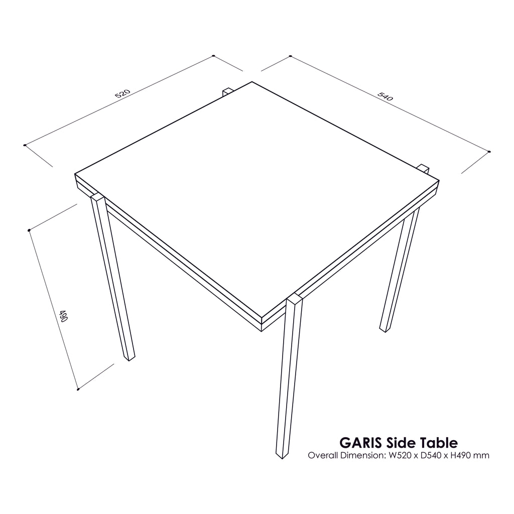 Side Table is part of GARIS Collection and nicely match for settings beside a Sofa, Arm Chair, Desk or even for placement if vase and other display items. By design, the metal legs are 'off - centred', making it an unique but nicely design piece. Available in American White Oak top with black metal leg frame.